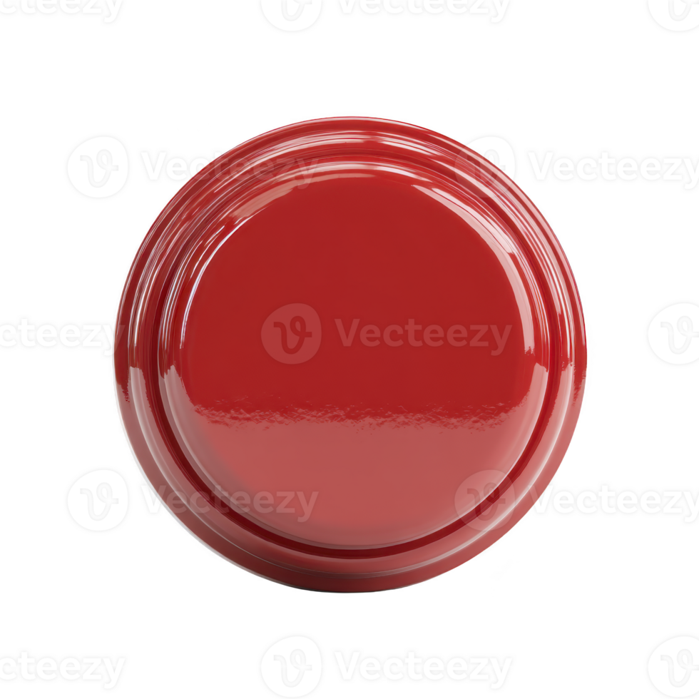 Shiny red button with glossy finish is centered against transparency background, reflecting light. button smooth surface and vibrant color create striking visual contrast Pro PNG