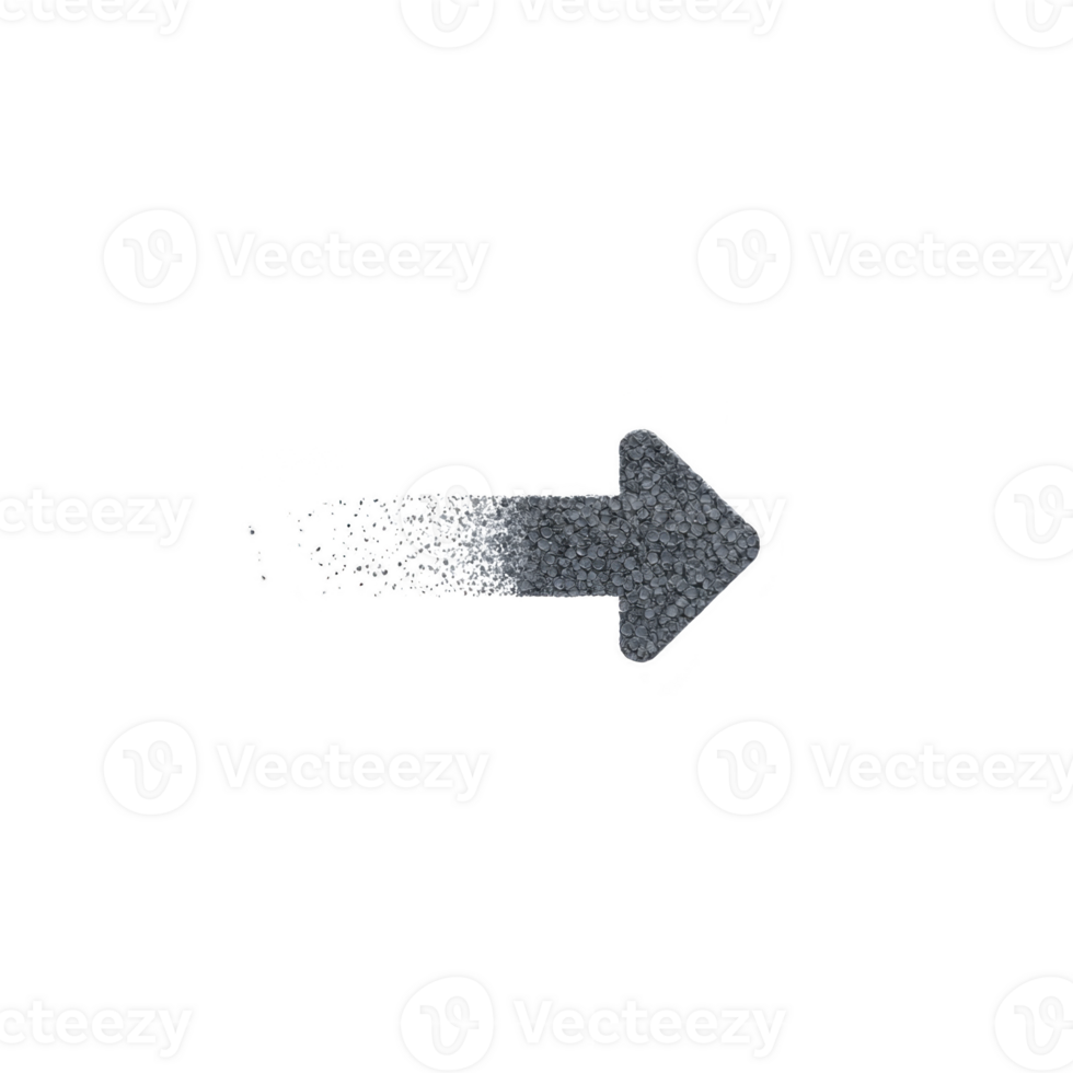 Textured arrow made of small stones points to right, with fading effect creating dynamic and directional feel. transparency background enhances contrast and focus on arrow Pro PNG