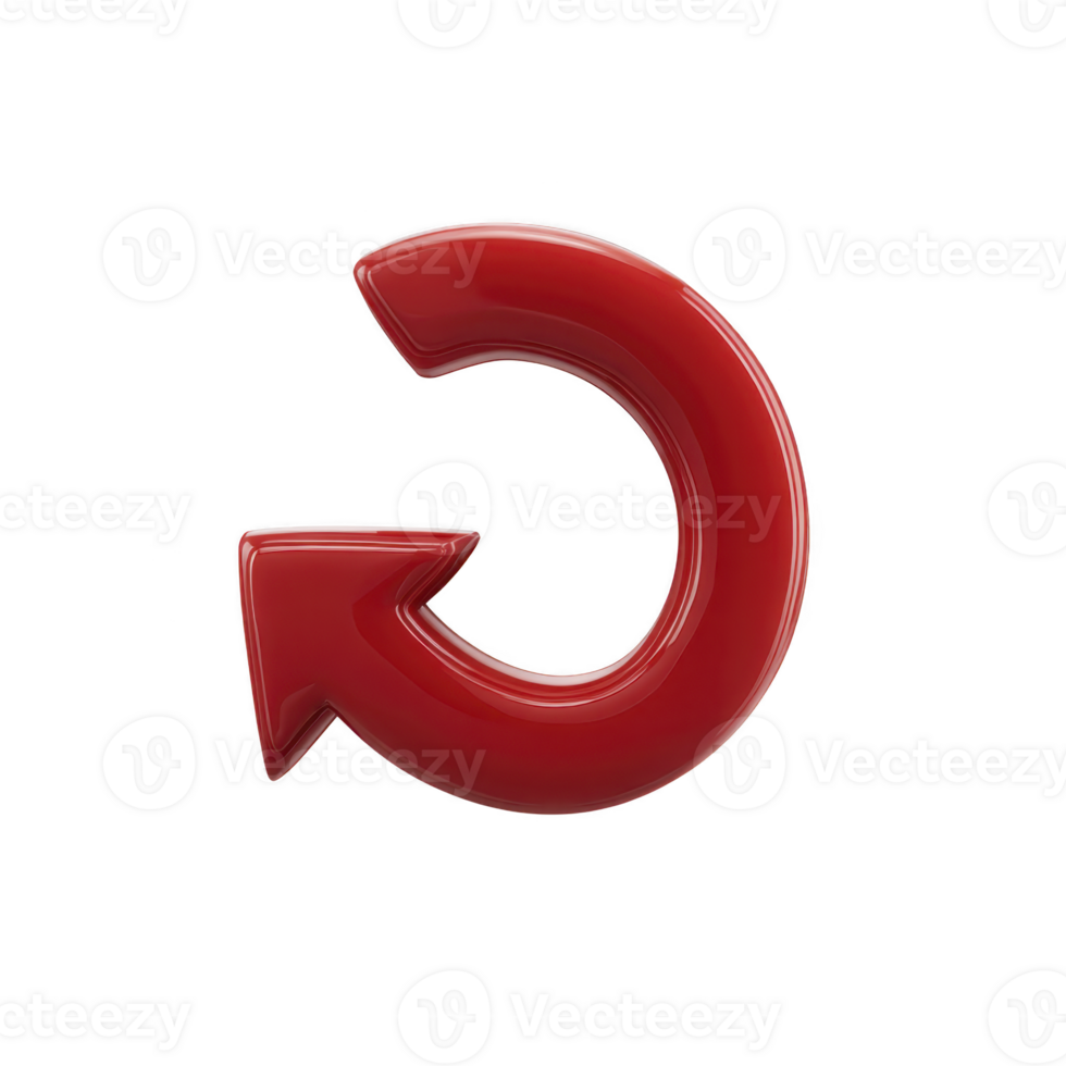 Shiny red 3D arrow forms circular shape, symbolizing rotation or refresh. arrow glossy finish and smooth curves give it modern and dynamic appearance Pro PNG