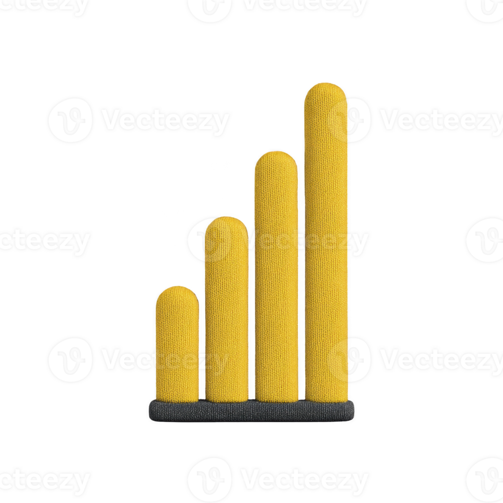 Yellow textured bar graph with four ascending columns on black base, symbolizing growth and progress. design is simple and modern, ideal for business or data presentations Pro PNG