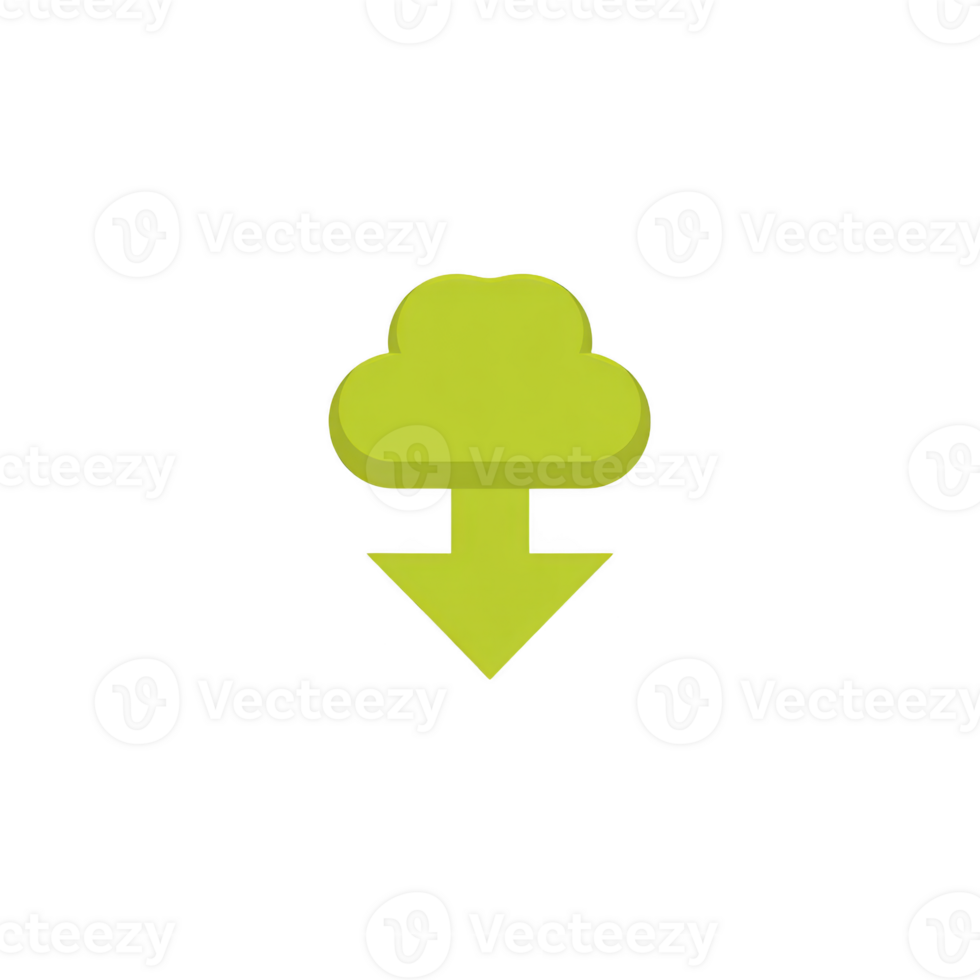 Green cloud icon with downward arrow symbolizes cloud downloading, representing data transfer from internet to device. simple design conveys digital connectivity Pro PNG