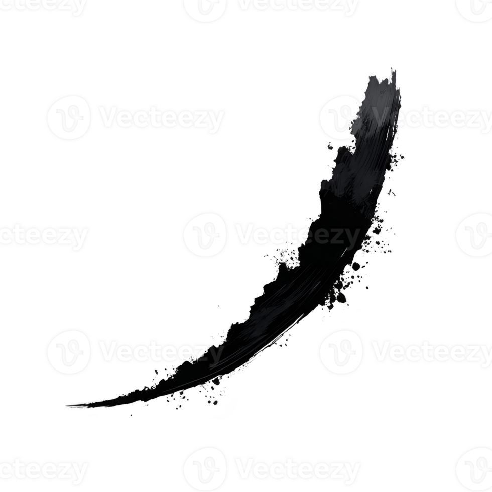 Dynamic black brushstroke on transparent background, showcasing artistic and expressive style. stroke is curved and textured, adding sense of movement and creativity Pro PNG