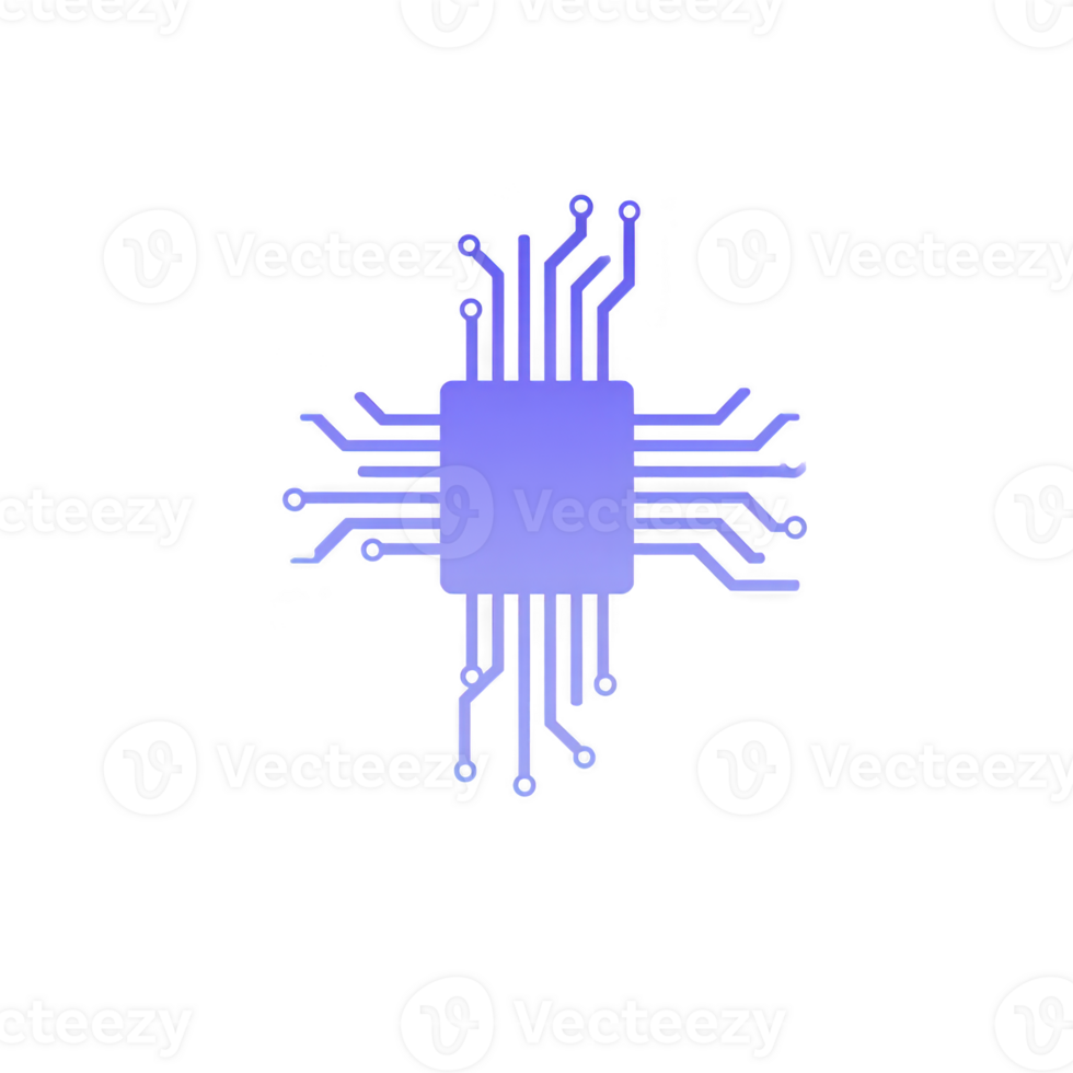 Glowing blue microchip with circuit lines extending outward symbolizes technology and innovation. design is sleek and modern, representing digital connectivity and electronic advancement Pro PNG
