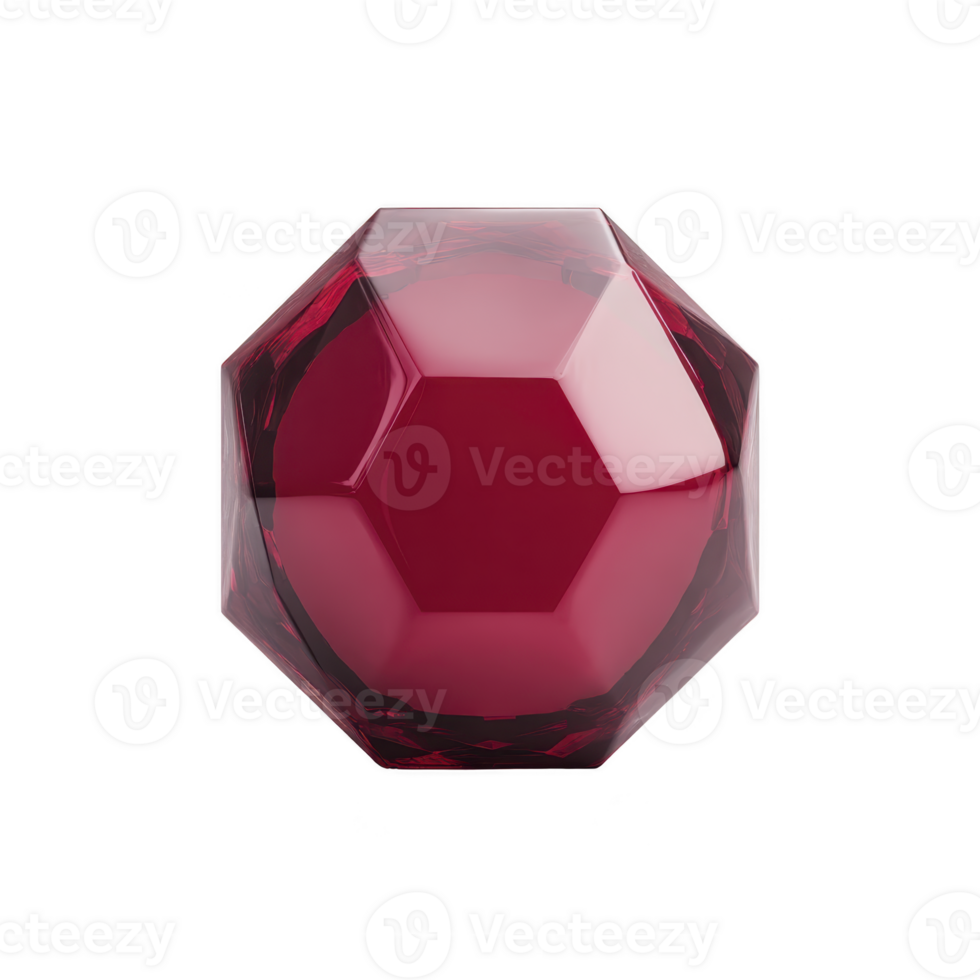 Faceted red gemstone with glossy finish, resembling polished ruby, is displayed against plain background. gem geometric shape and vibrant color create striking visual effect Pro PNG