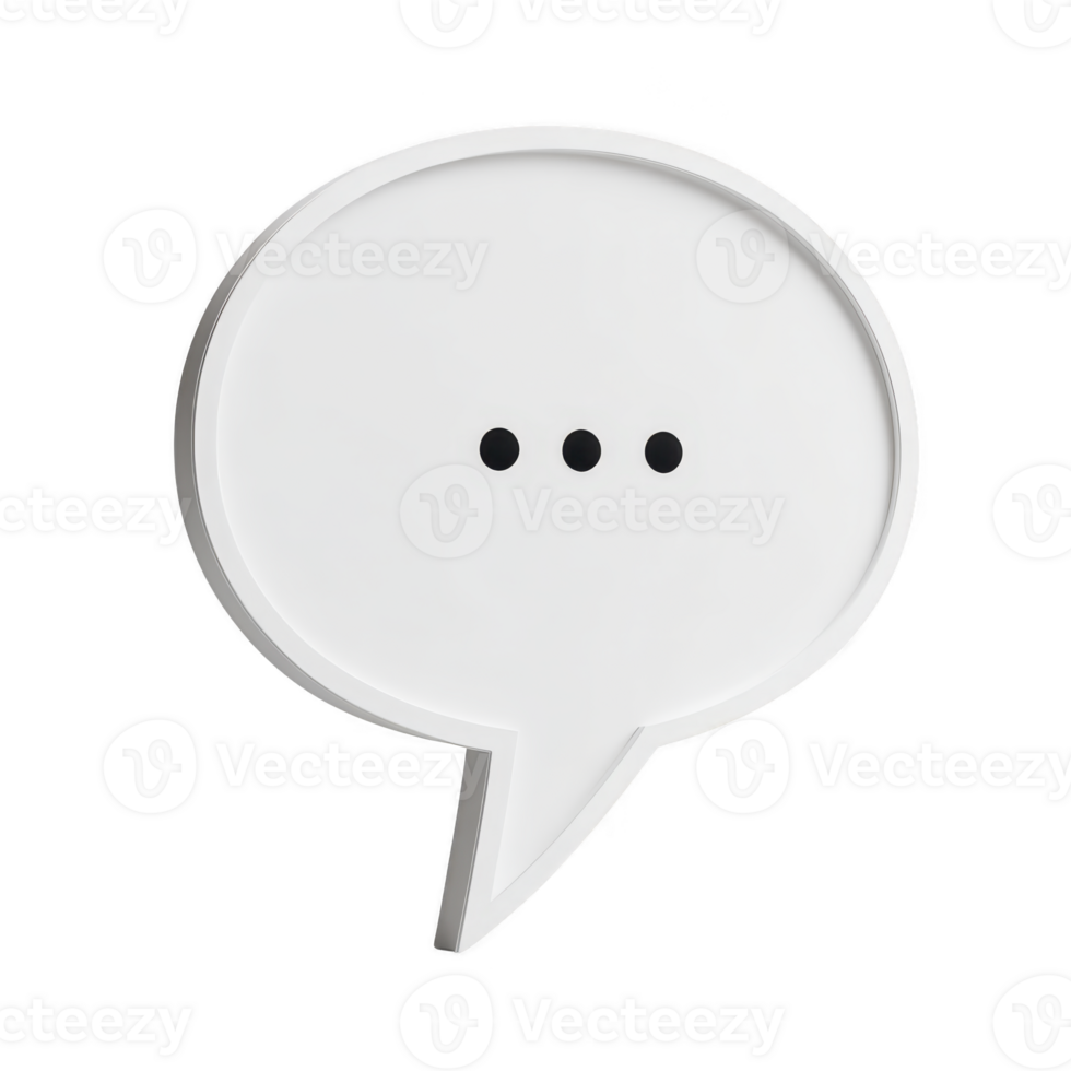 White 3D speech bubble with three black dots symbolizes communication and conversation. minimalist design is ideal for representing dialogue, messaging, or social media interaction Pro PNG