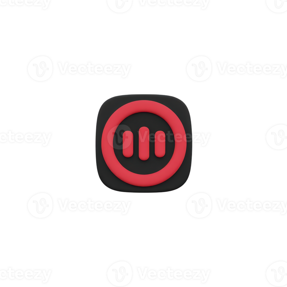 Red pause button icon with circular design and three vertical bars in center, set against transparency background. minimalist style conveys sense of simplicity and functionality Pro PNG