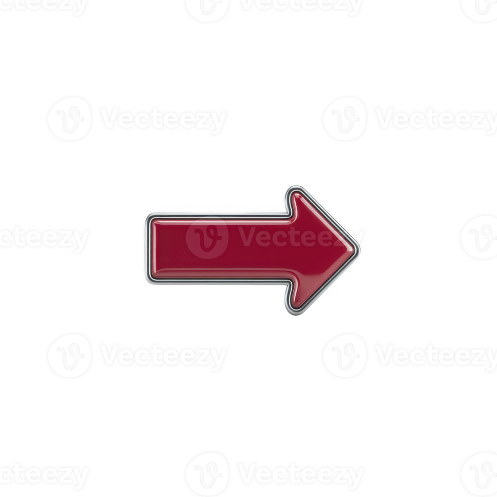 Shiny red arrow pointing to right with metallic outline, isolated on transparency background. arrow has glossy finish, giving it modern and sleek appearance Pro PNG