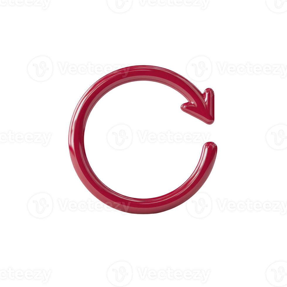 Red 3D circular arrow icon on transparent background, symbolizing refresh or reload. arrow is smooth and glossy, pointing clockwise, often used in digital interfaces Pro PNG