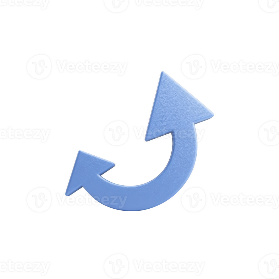 Blue curved arrow icon with smooth texture, pointing upwards and to right, symbolizing direction or movement. design is simple and modern, suitable for digital interfaces Pro PNG