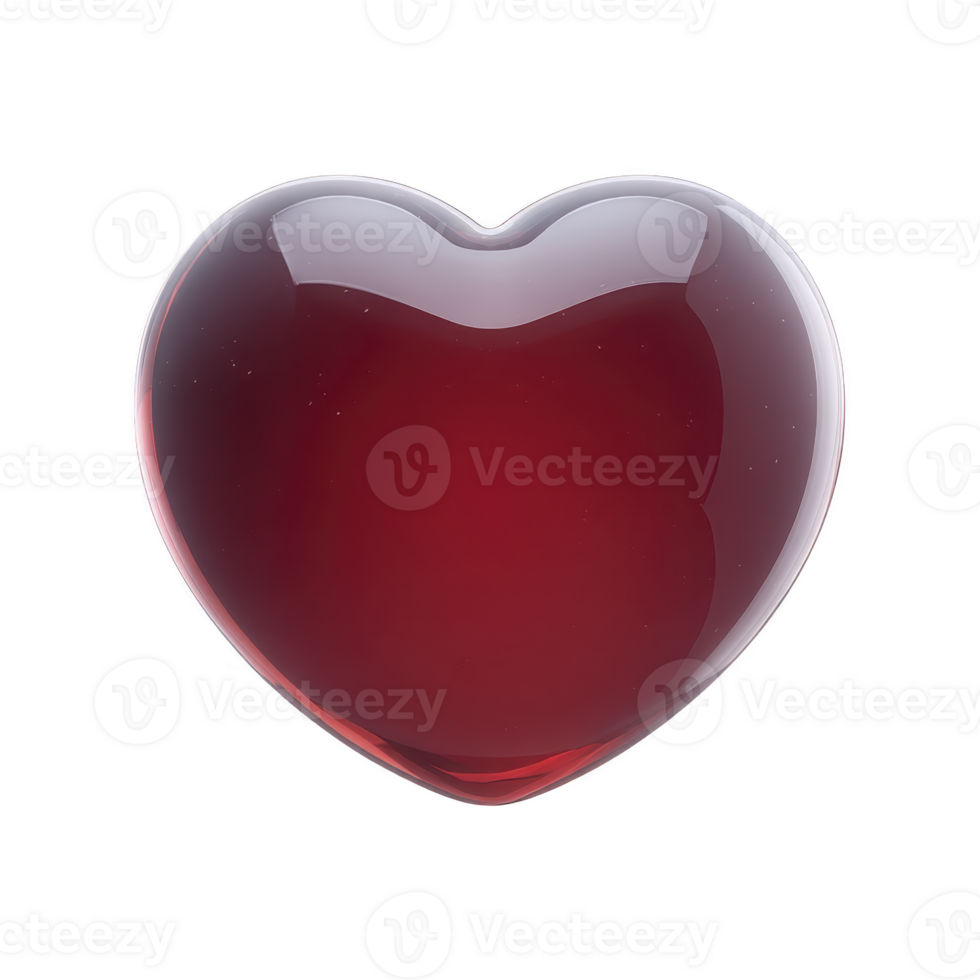 Glossy red heart shaped object with smooth, reflective surface, symbolizing love and affection. heart appears three dimensional and is isolated on transparency background Pro PNG