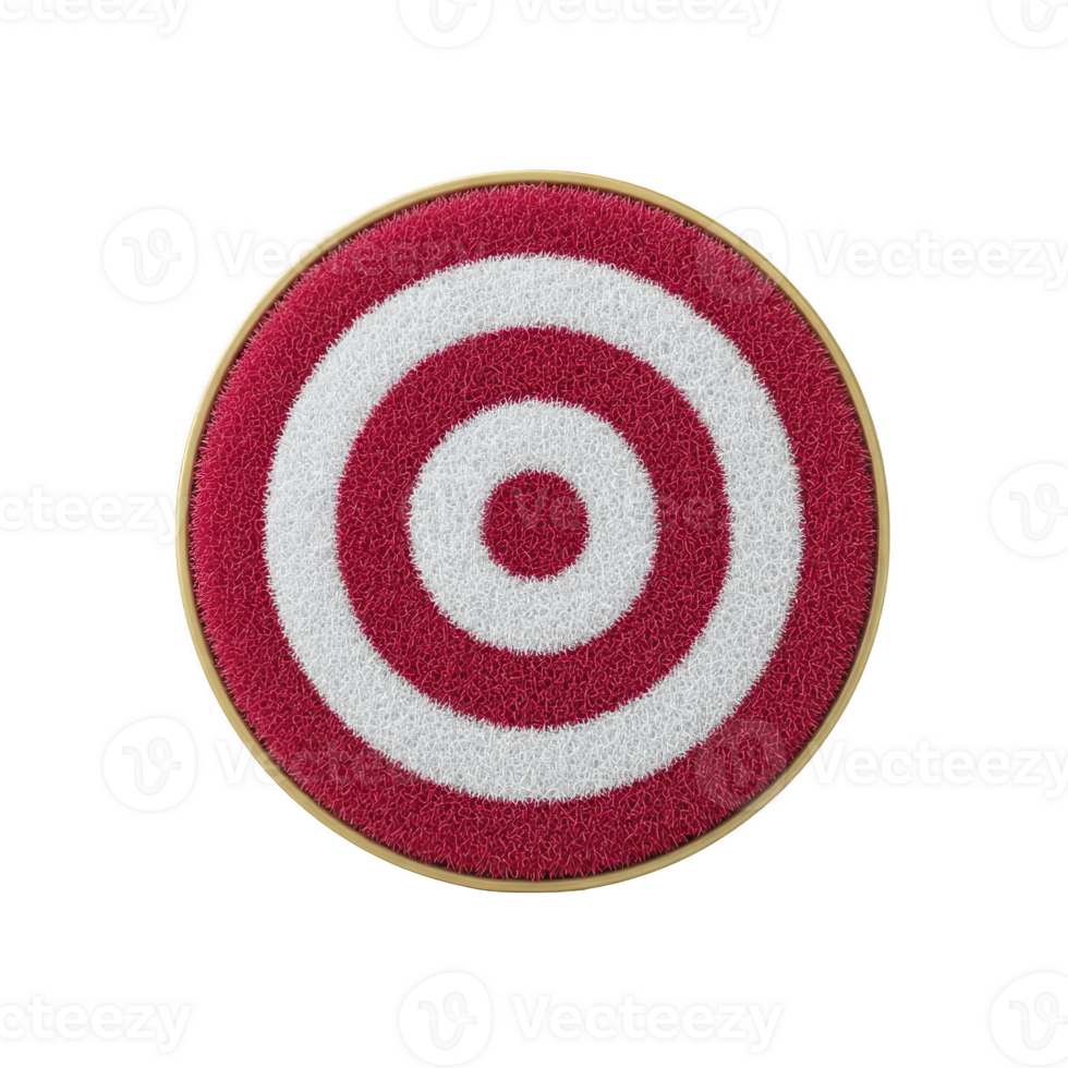 Circular doormat with red and white bullseye pattern, featuring concentric circles, adds playful touch to any entryway. vibrant design is both functional and decorative Pro PNG