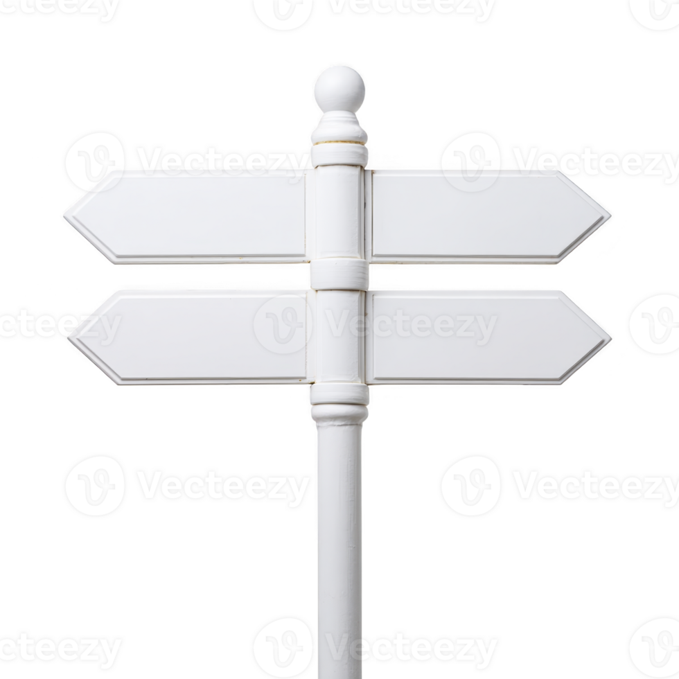 Blank white directional signpost with four arrows pointing in different directions, isolated on transparency background. signpost is simple and clean, offering sense of choice and direction Pro PNG