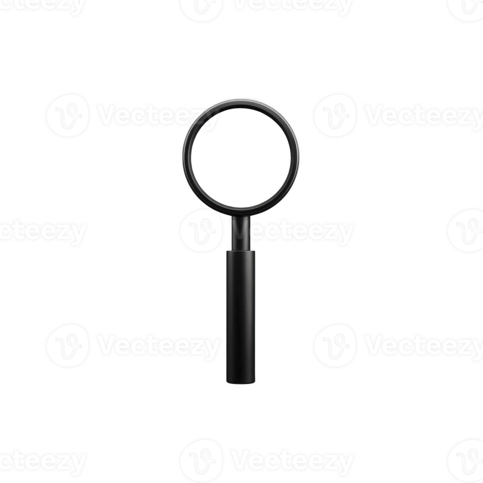 Black magnifying glass with simple design is isolated on transparency background, emphasizing its sleek and minimalist style. magnifying glass is positioned vertically Pro PNG