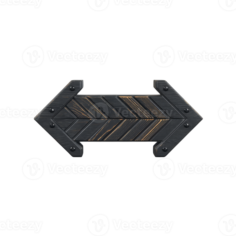 Black wooden arrow sign with chevron pattern, featuring rustic and textured design, pointing in both directions. sign is isolated on transparency background Pro PNG