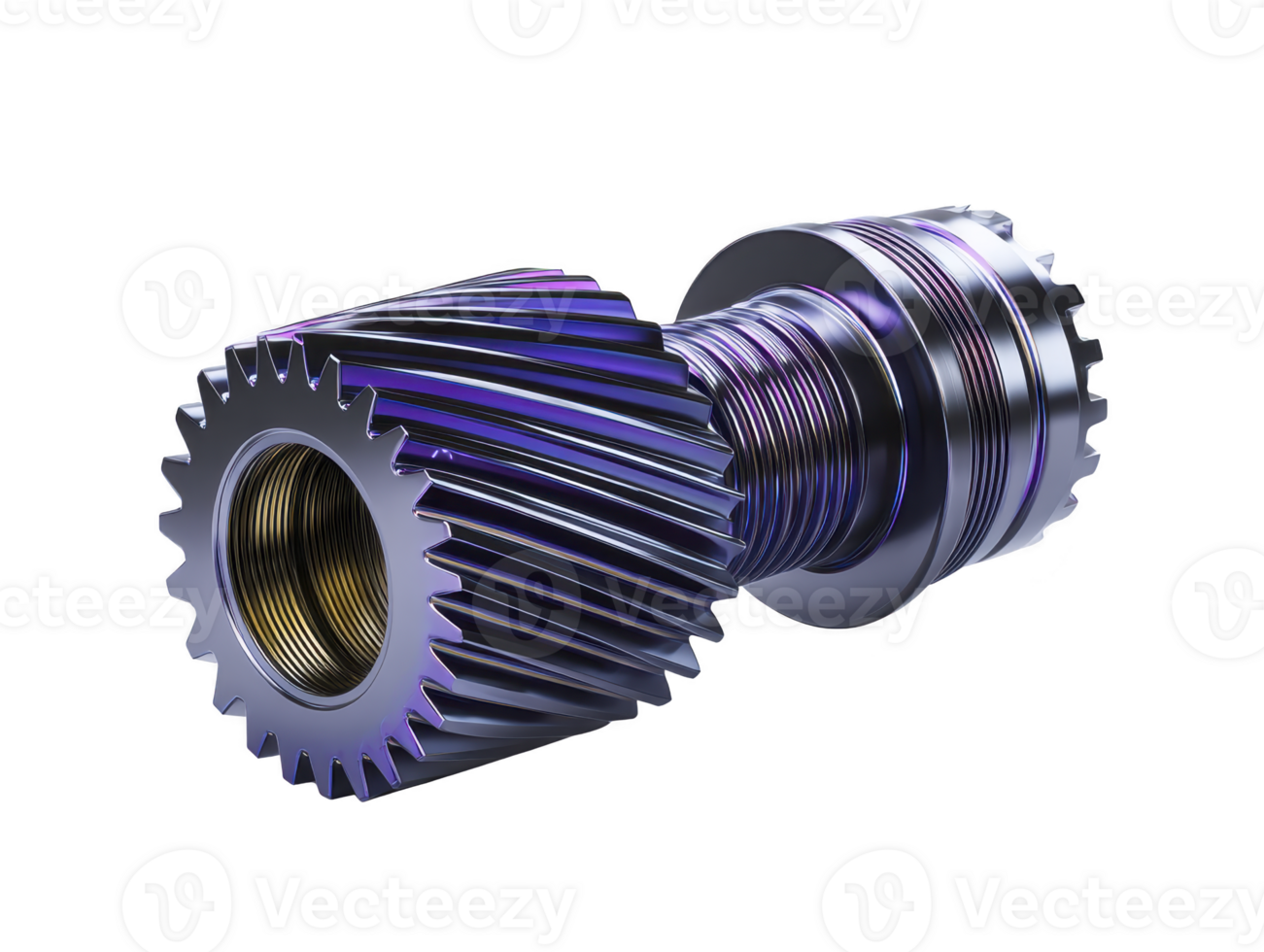 Shiny metallic helical gear with intricate grooves and reflective surface, showcasing engineering precision and industrial design. gear complex structure highlights its functionality in machinery Pro PNG