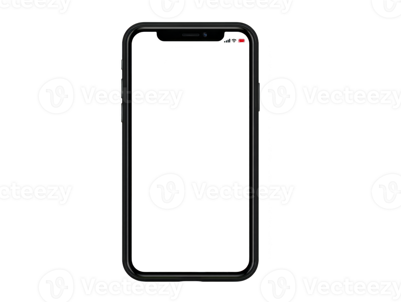 Sleek black smartphone with notch display and notification icon on top right corner, isolated on transparency background. design is modern and minimalistic Pro PNG