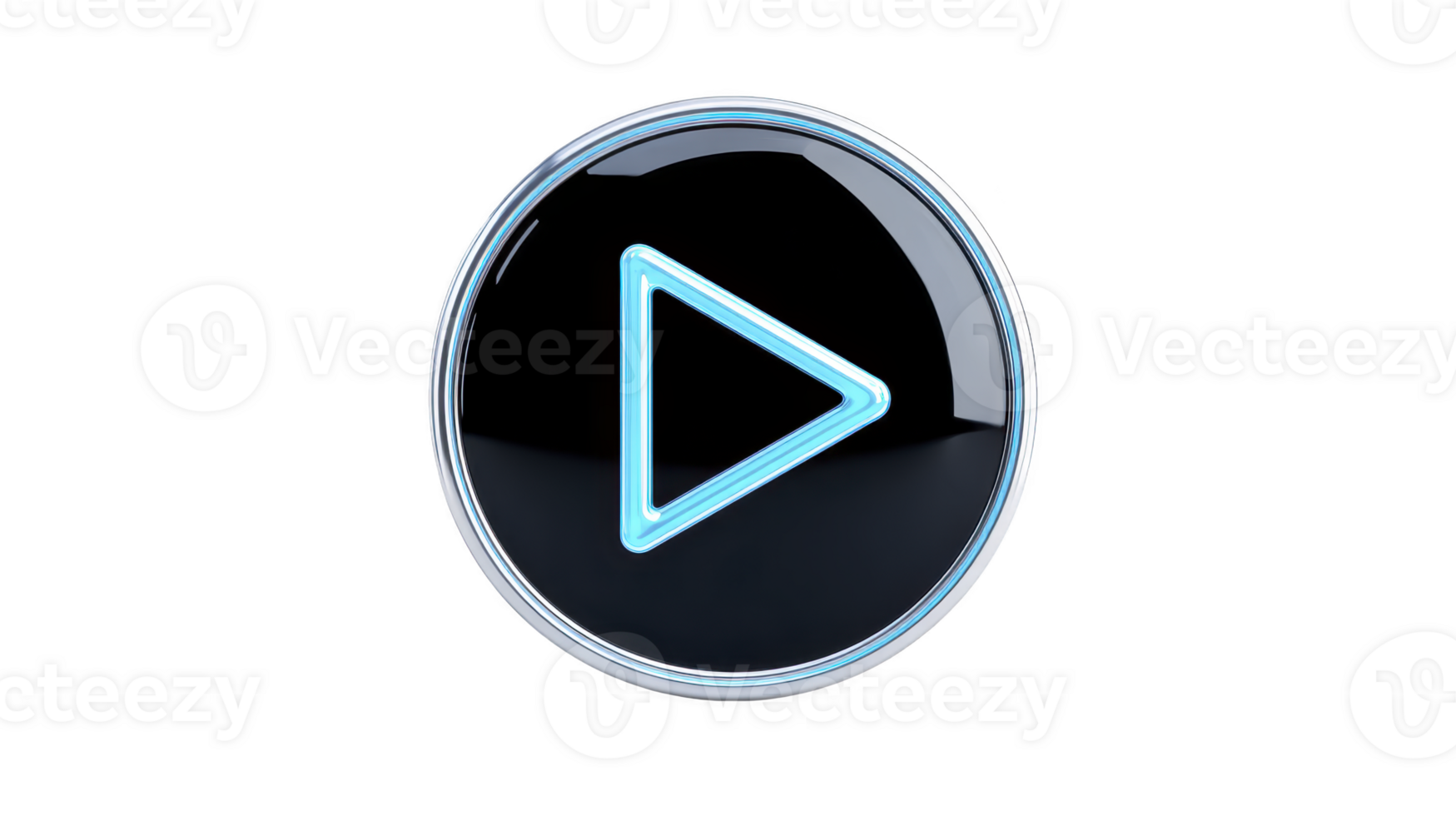 Glossy, circular play button icon with blue neon outline on transparency background, symbolizing media playback or streaming. modern design conveys sense of technology and digital interaction Pro PNG