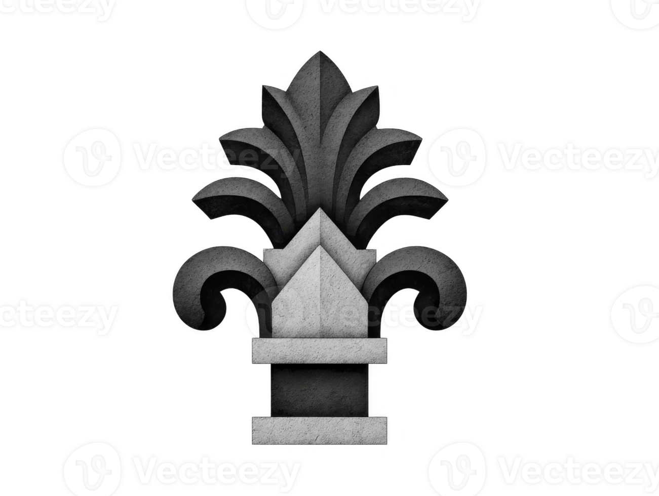 Decorative architectural element featuring stylized floral design, combining curves and sharp angles, often used in classical architecture. This piece showcases elegance and artistry Pro PNG