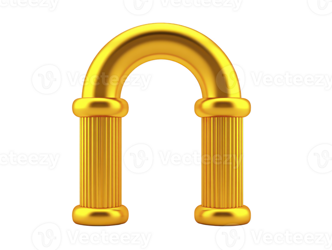 Golden arch design with shiny finish, featuring fluted columns and smooth, polished surface. This elegant structure can symbolize grandeur and luxury, perfect for various decorative uses Pro PNG