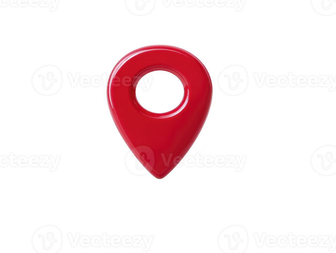 Vibrant red location pin icon, symbolizing navigation and mapping. This graphic element is perfect for representing directions, travel, and location based services Pro PNG