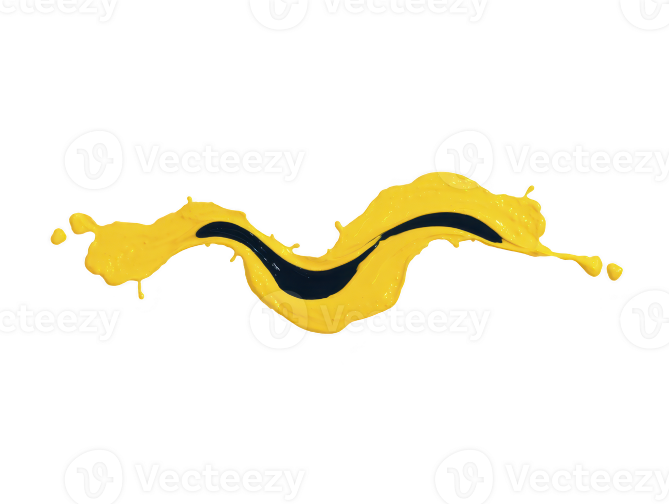 Bright yellow paint splash with smooth black curve flowing through it, creating dynamic and artistic visual effect. This vibrant image evokes creativity and energy Pro PNG