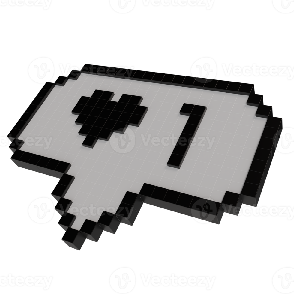 3D render pixel art like notification icon with heart and number one, symbol of social media love, digital appreciation, retro pixel design for technology and online interaction Pro PNG