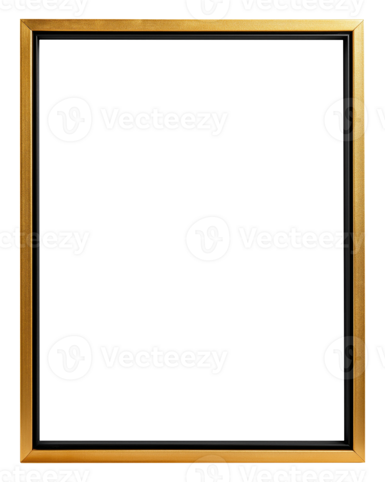 Simple rectangular picture frame with golden outer border and black inner trim isolated on transparent background Pro PNG