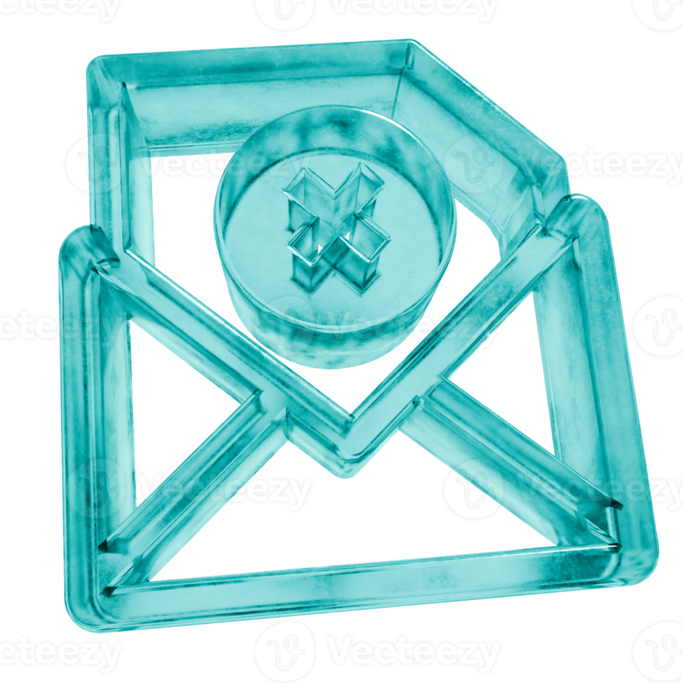3D email remove delete shapes in frosted blue ice glass style, isolated on a transparent background. Glassmorphism icons and 3D elements for modern graphic design. Pro PNG