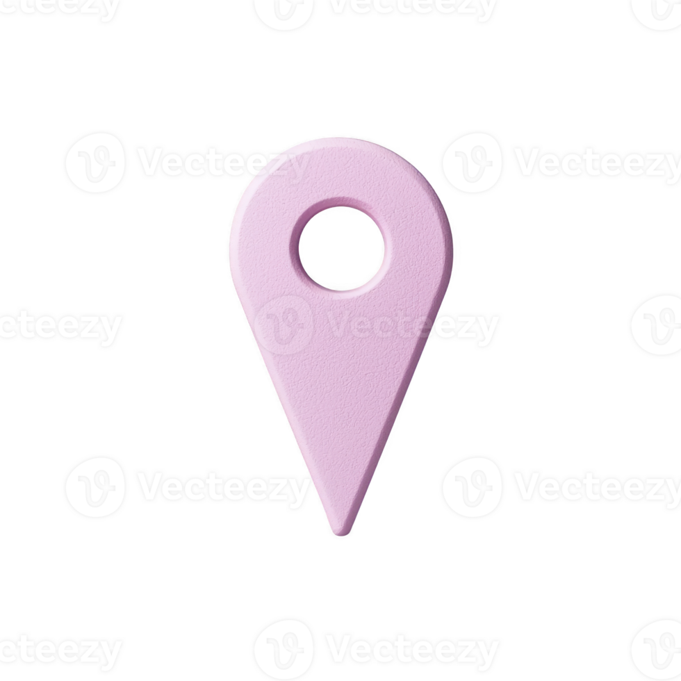 pink 3D location pin icon is depicted against transparency background, symbolizing navigation or map location. design is simple and modern, with circular hole at top Pro PNG