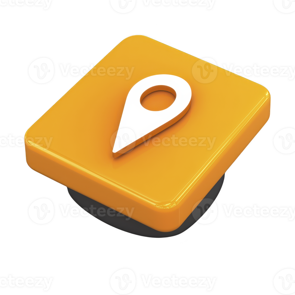 3D orange square icon with white map pin symbol, representing location or navigation, is depicted. glossy finish and modern design convey sense of technology and connectivity Pro PNG