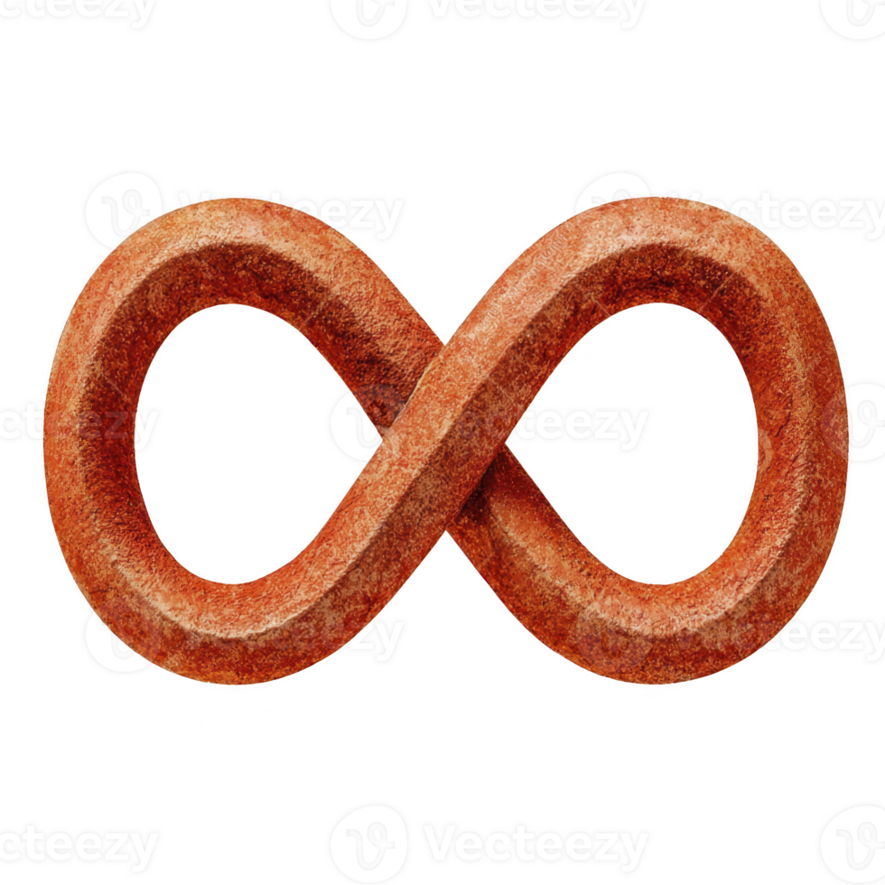 Wooden infinity symbol with smooth texture and warm brown color, representing eternity and continuity. symbol is isolated on transparency background, emphasizing its shape Pro PNG