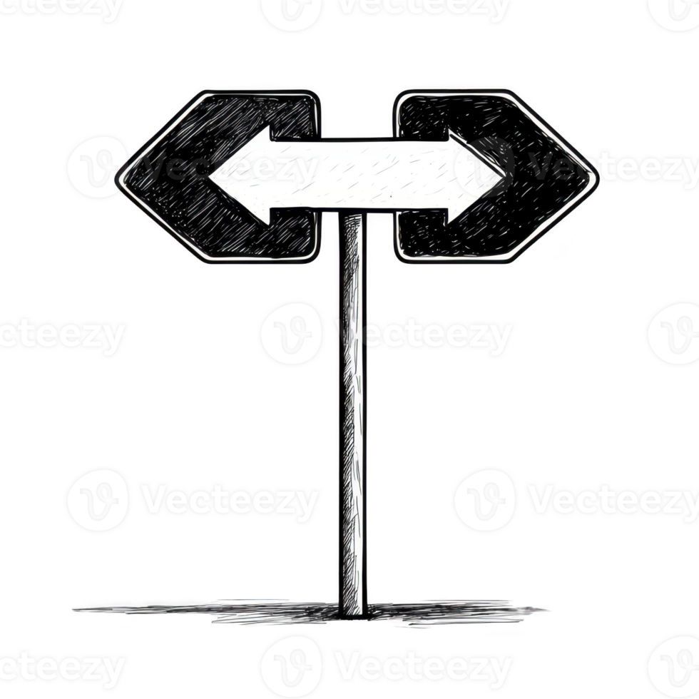 Sketch of two way directional signpost with arrows pointing left and right, symbolizing choice and decision making. monochrome design adds classic touch Pro PNG