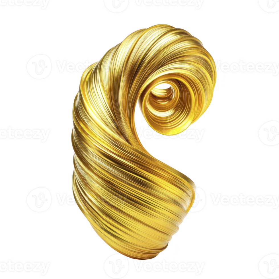 Swirling, abstract golden sculpture with shiny metallic finish, resembling twisted ribbon or wave, isolated on transparency background. design is elegant and dynamic Pro PNG