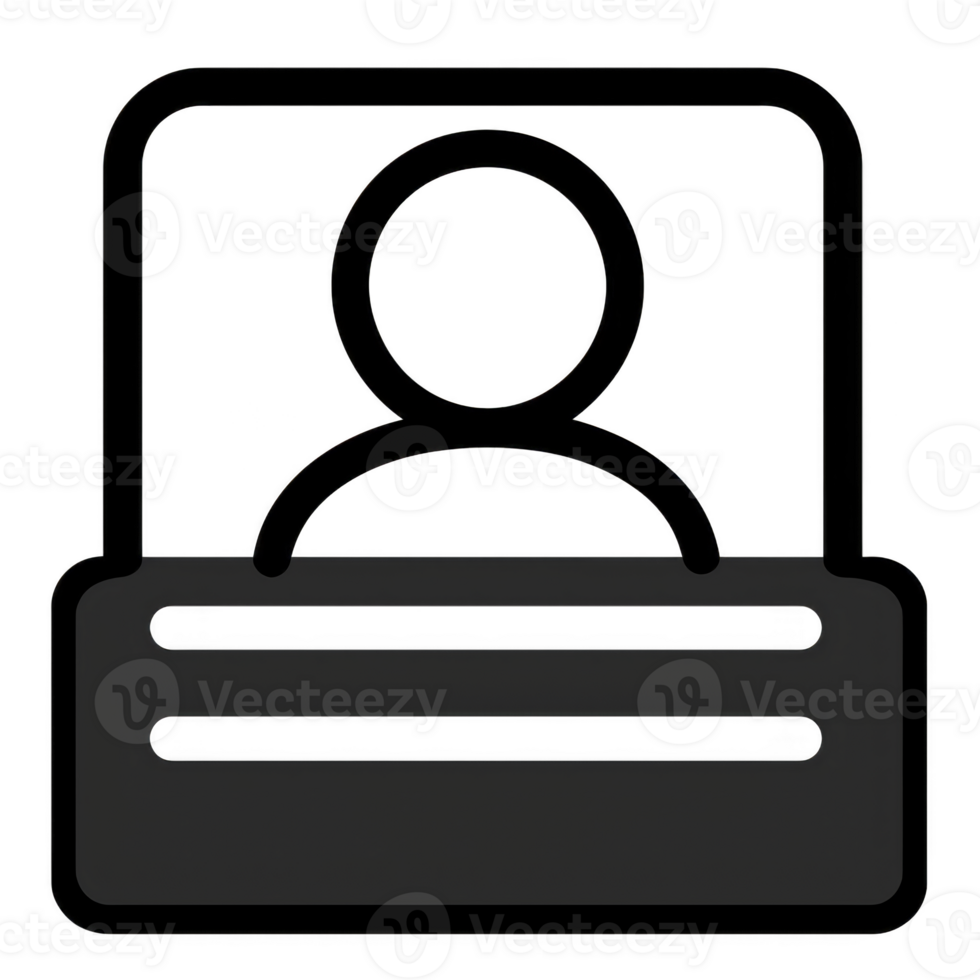 This shows simple black and white icon of person inside rectangular frame, resembling user profile or identification card. design is minimalistic and straightforward Pro PNG