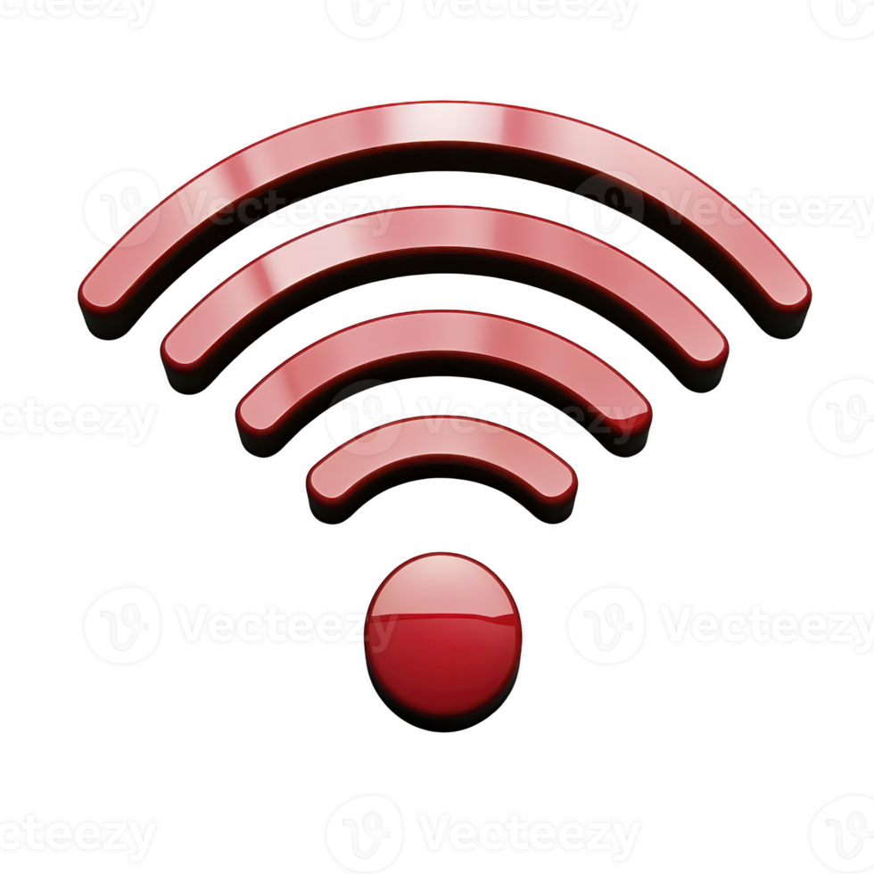 Red Wi Fi symbol with glossy finish, representing wireless connectivity and internet access. design is simple and modern, emphasizing technology and communication Pro PNG