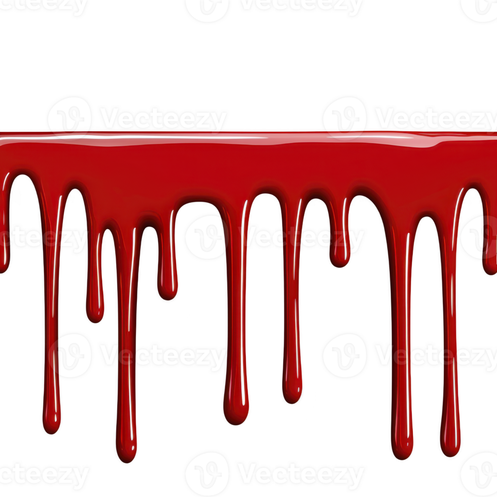 Red paint drips down against transparency background, creating dramatic and artistic effect. glossy texture and vibrant color add sense of movement and intensity Pro PNG