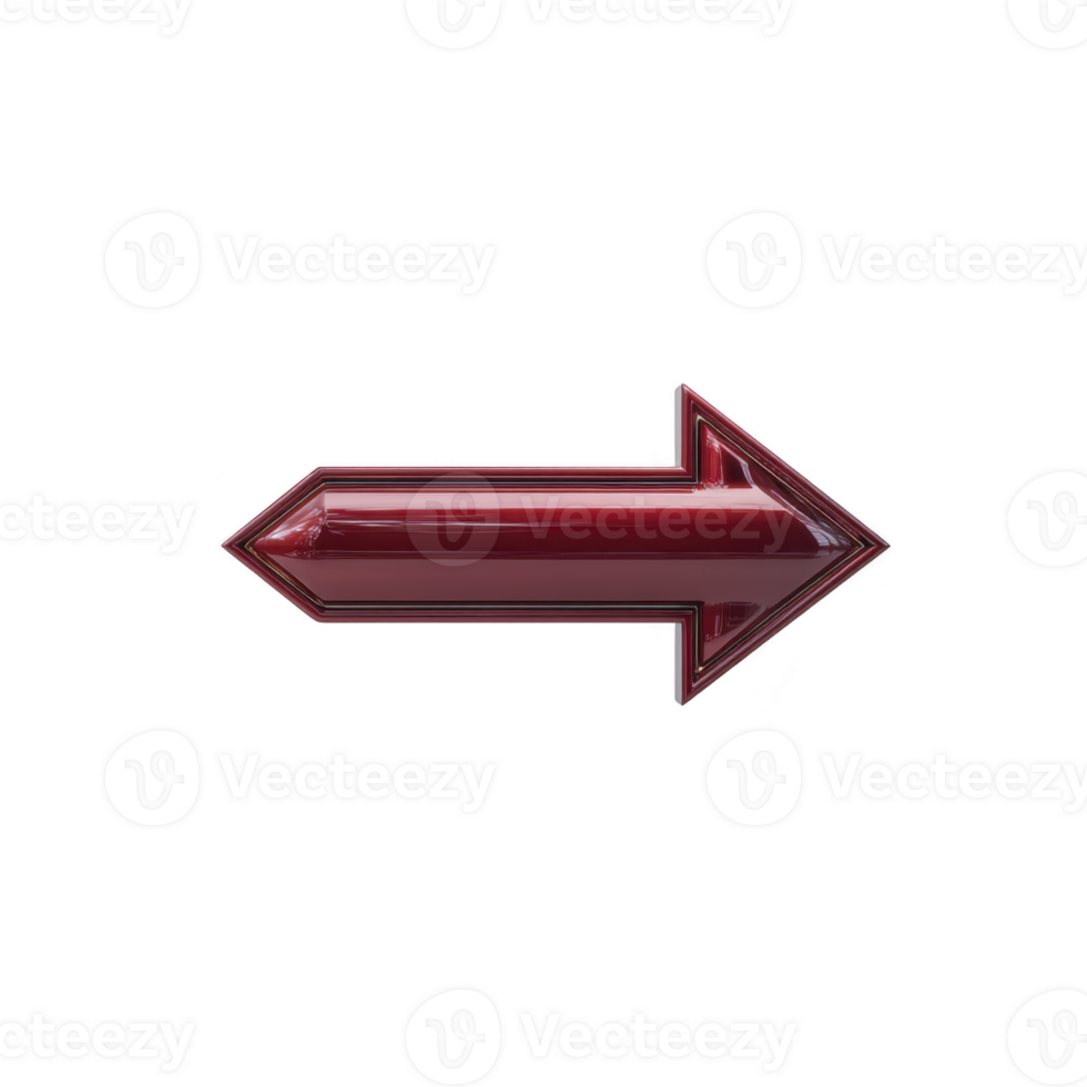 Shiny red arrow pointing to left on plain background, symbolizing direction or navigation. glossy finish adds modern touch, making it suitable for design or instructional purposes Pro PNG