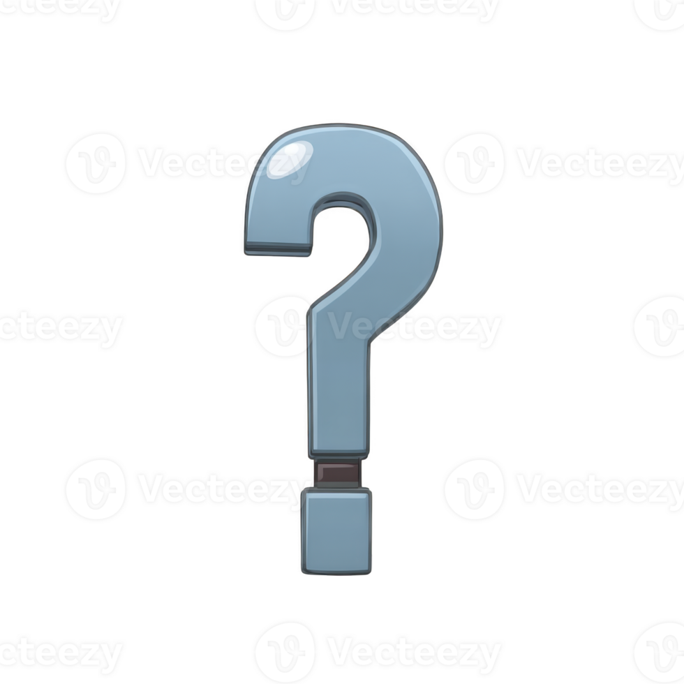 This features glossy blue question mark with reflective surface, symbolizing inquiry or curiosity. question mark is centered on plain background, emphasizing its significance Pro PNG