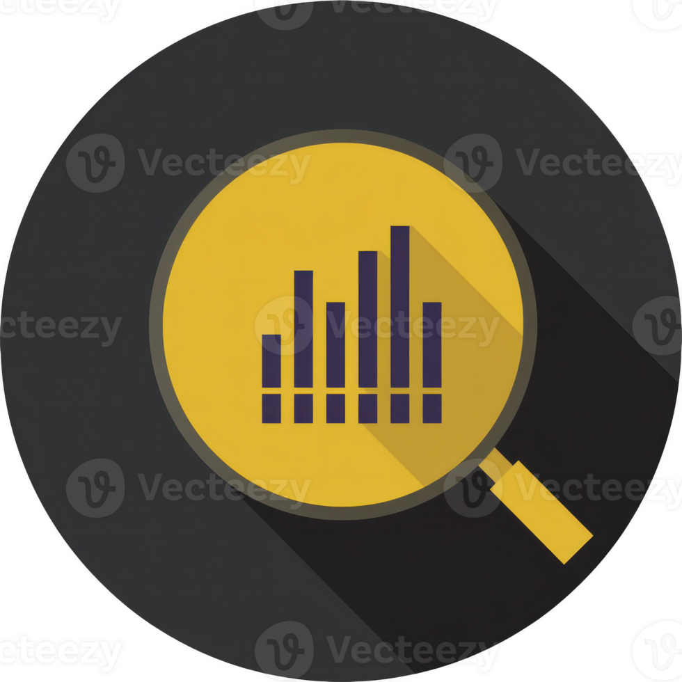 Magnifying glass with yellow handle focuses on bar graph, symbolizing data analysis and research. transparency background enhances contrast and highlights analytical theme Pro PNG