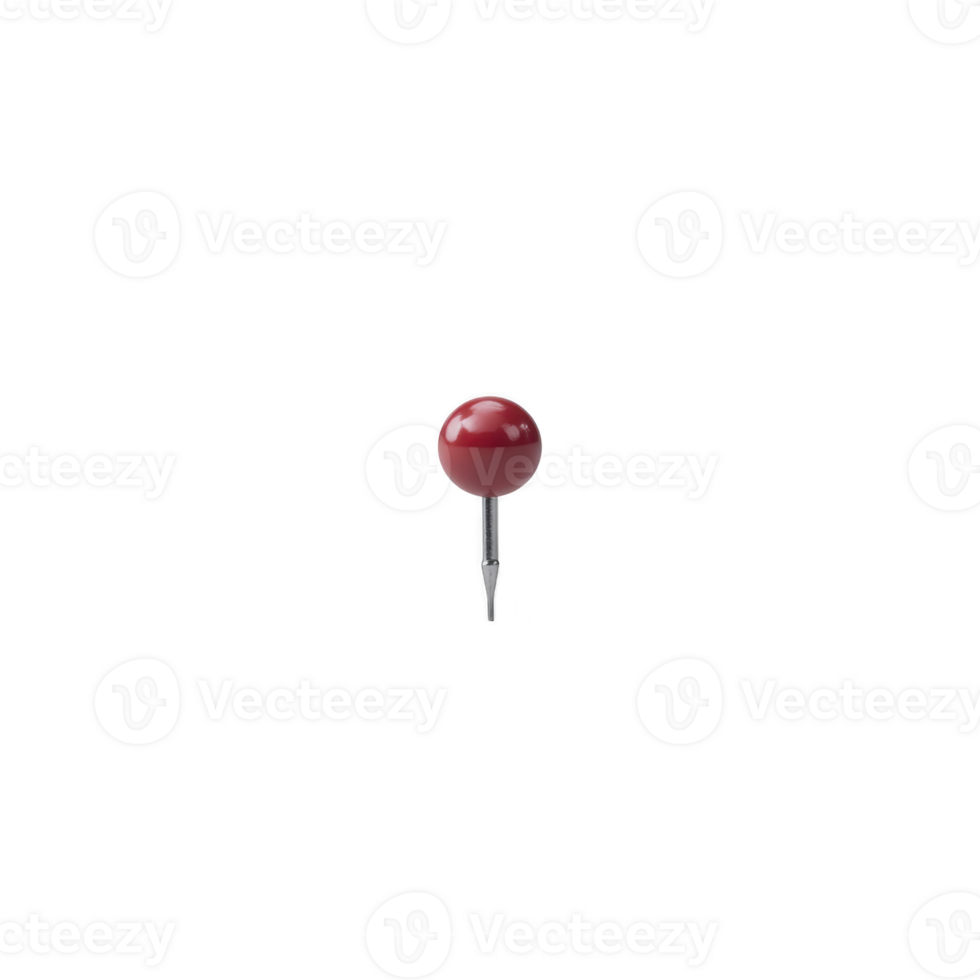 Single red pushpin with shiny round head and sharp metal point is isolated on transparency background. Pro PNG