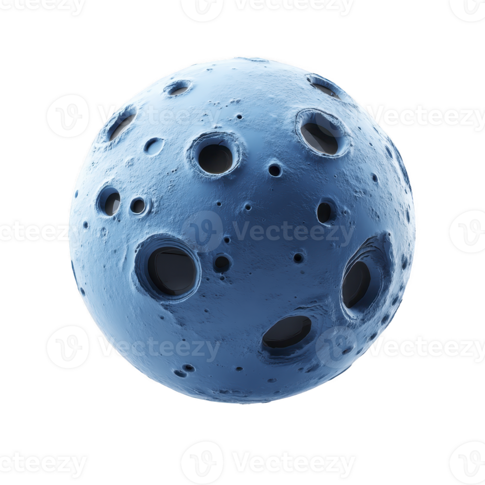 Blue spherical object resembling moon with craters, floating against transparency background, evokes sense of mystery and space exploration Pro PNG