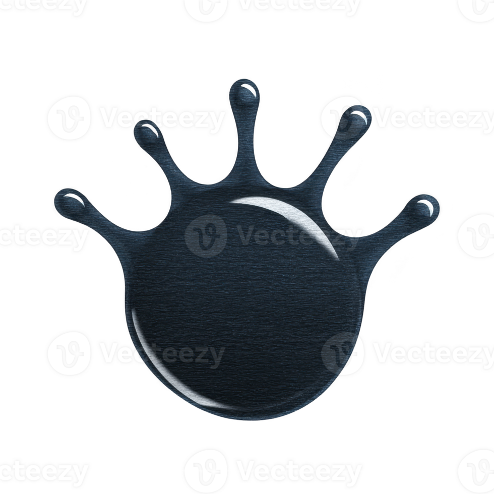 Shiny black splash shape with glossy finish and smooth texture, resembling paint or ink splatter. design is abstract and artistic, with reflective surface that adds depth Pro PNG