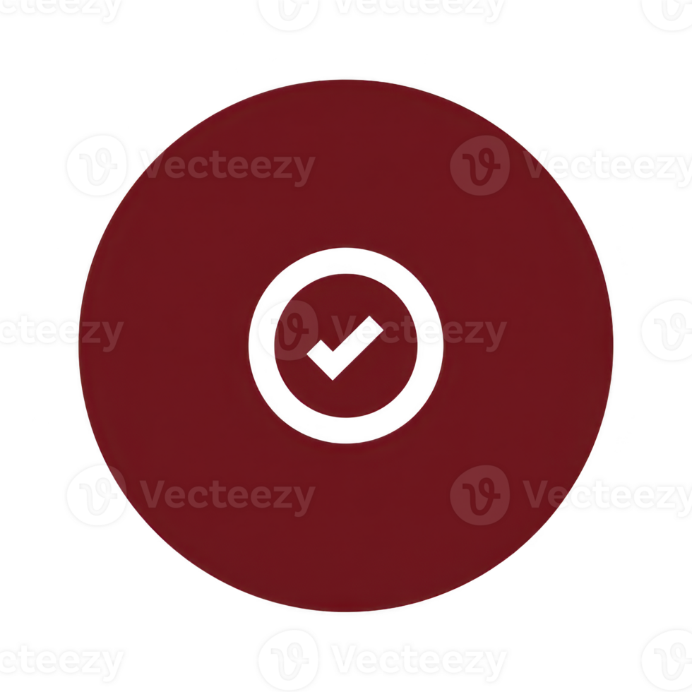 Maroon circular icon features checkmark in center, symbolizing approval or completion. design is simple and modern, suitable for digital interfaces or graphic design projects Pro PNG
