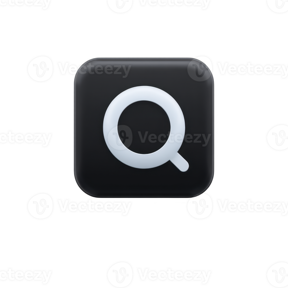 Black square icon with white magnifying glass symbol, representing search functionality, is displayed on transparent background. design is simple and modern Pro PNG