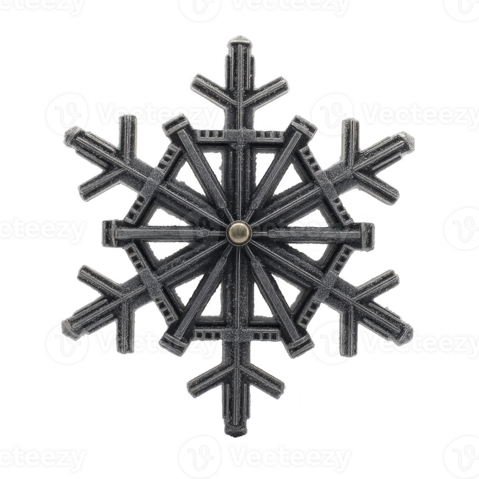 Detailed, symmetrical snowflake design with intricate patterns and metallic center, evoking sense of winter elegance. snowflake geometric structure is highlighted against transparent background Pro PNG