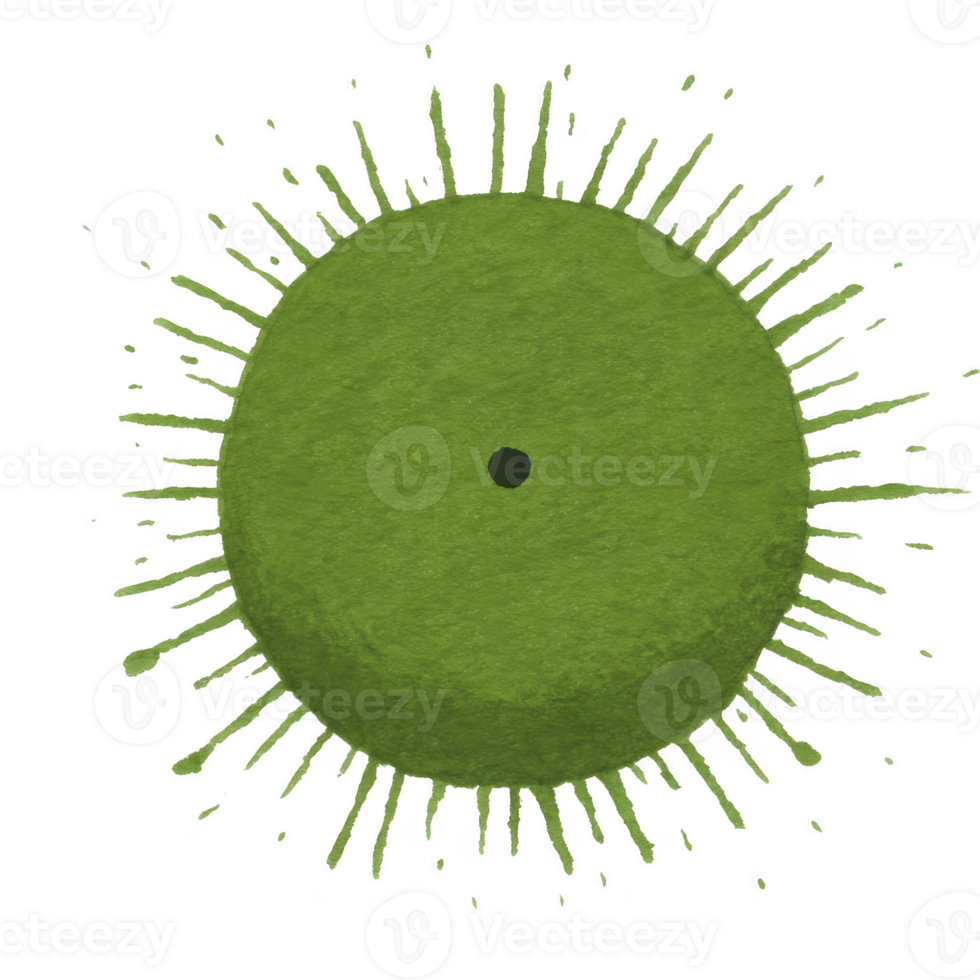 Vibrant green circular splash with textured surface and central dot creates dynamic and artistic effect. radial splatter pattern adds energy and movement Pro PNG