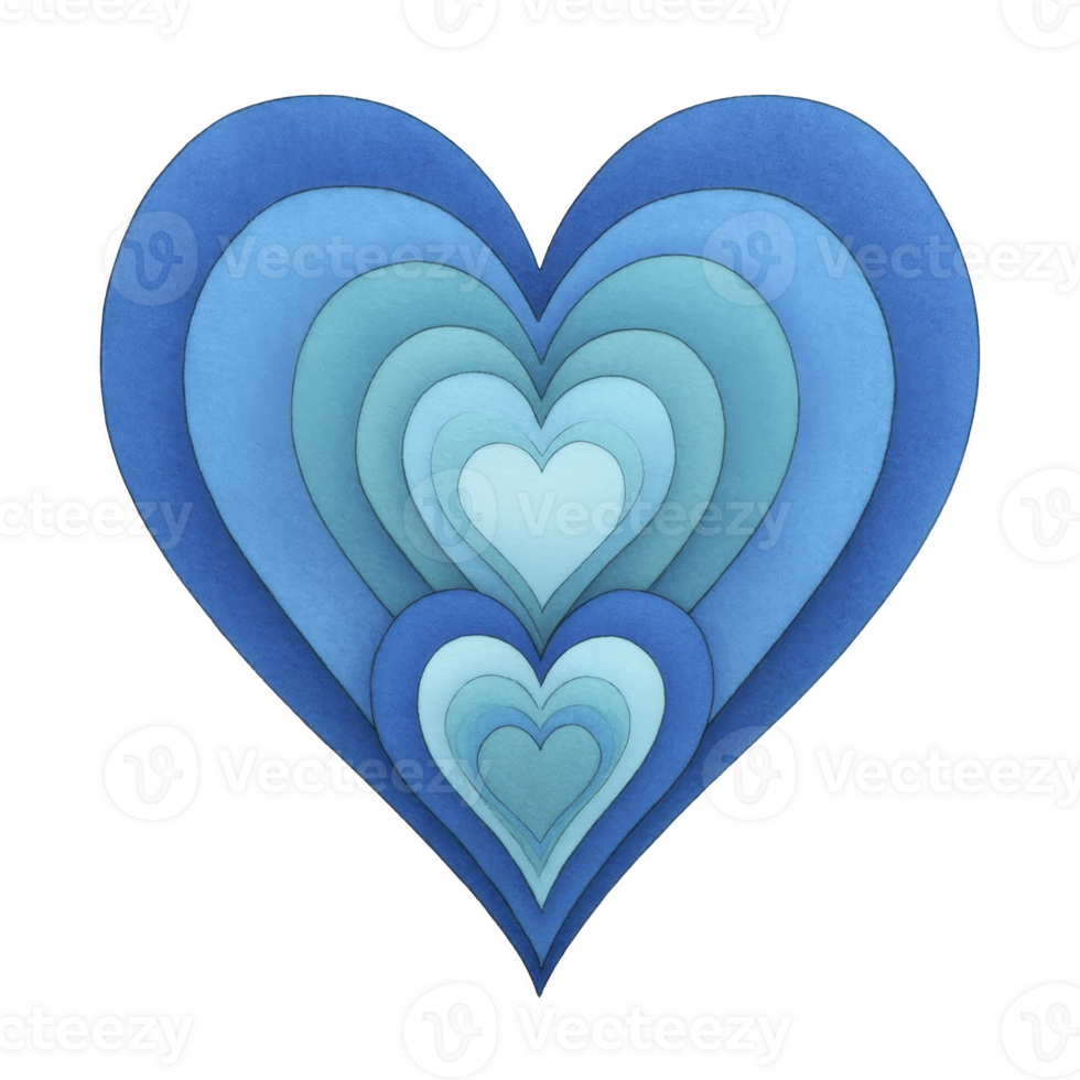 Layered blue heart design with various shades of blue creates harmonious and calming effect. heart shapes are nested within each other, symbolizing depth and unity Pro PNG