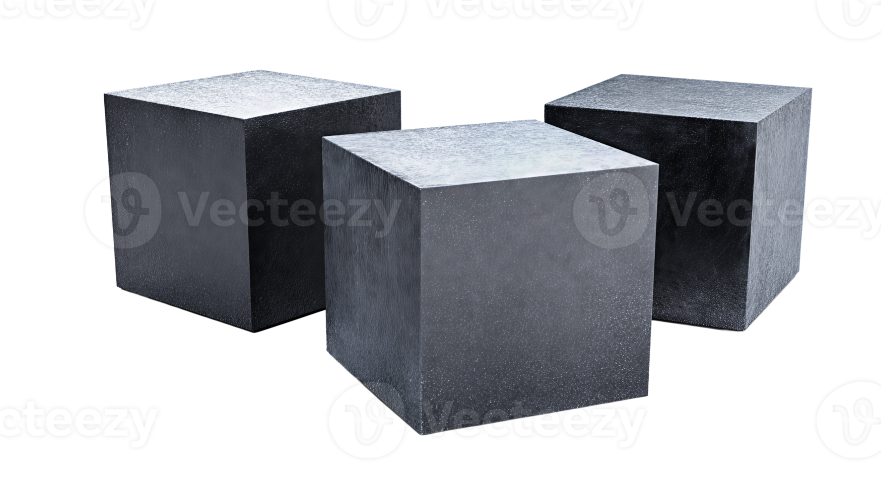 Set of graphite geometric cubes showing fine micro-texture and precise beveling, isolated on transparent background. Pro PNG