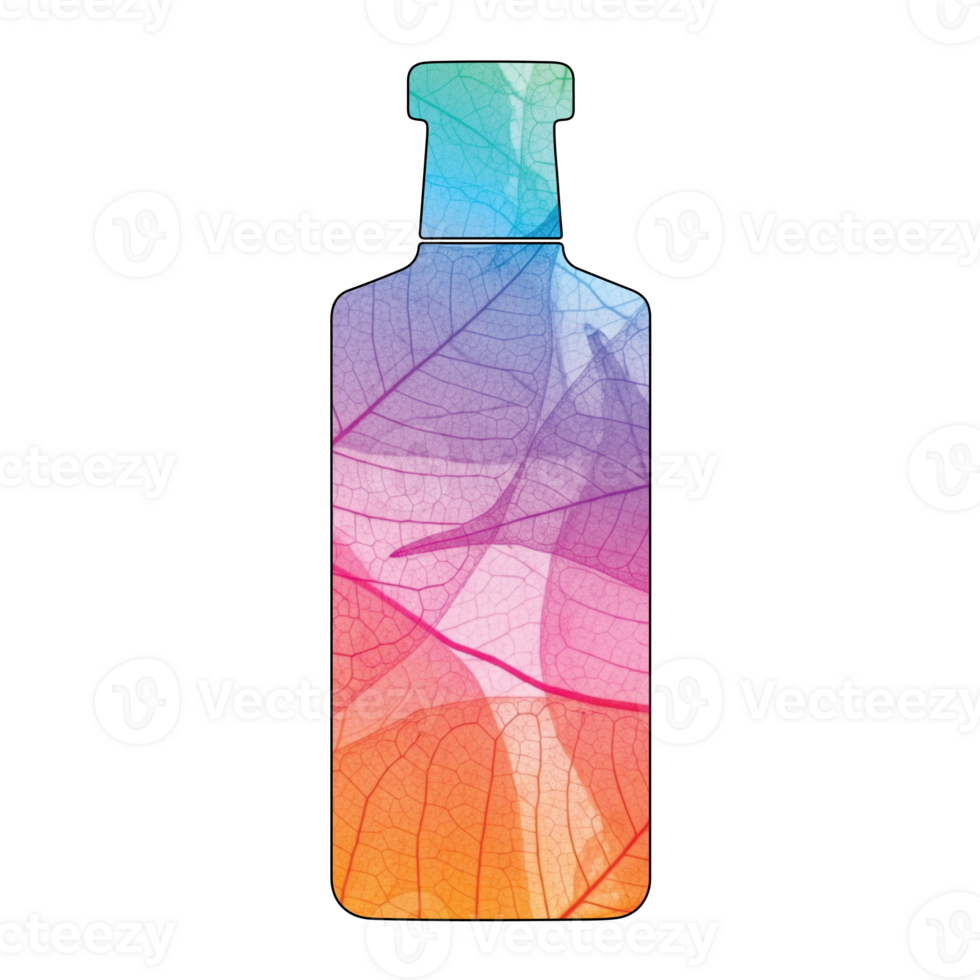 Illustration of a bottle with a leaf pattern and a gradient, isolated on transparent background, blending natureinspired aesthetics with modern design for a unique container Pro PNG
