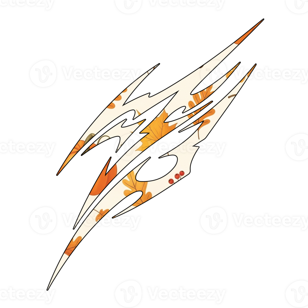 Illustration of abstract jagged shape filled with autumn leaves and berries, isolated on transparent background, creating a unique and seasonal graphic element Pro PNG